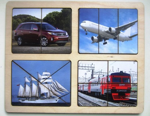 Купить Разрезные картинки Транспорт в Новосибирске Вы можете в магазине развивающих и настольных игр "Игры Почемучек".