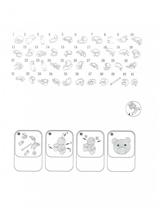 В комплекте с головоломкой вы получите инструкцию, где для каждой детали будет указан номер. Если вы захотите воспользоваться подсказкой, разложите детали согласно номерам в инструкции и соединяйте одна с другой. Но наш совет: не спешите заглядывать в шпаргалку, не лишайте себя удовольствия самостоятельно собрать эту замечательную фигуру!
