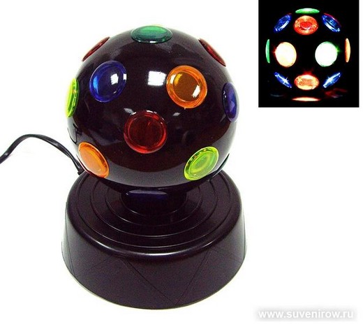 затемнённых помещениях. При включении в сеть, начинает вращаться шар, а по