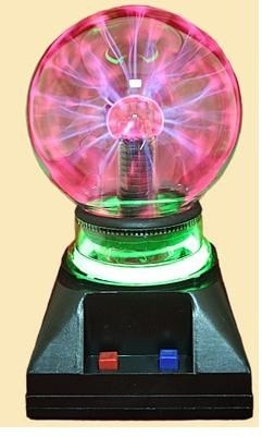 Светильник "Плазма №5" - плазменный светильник в виде шара на подставке, при включении создаёт внутри стеклянной сферы множество цветных молний, разбегающихся во все стороны из центра.