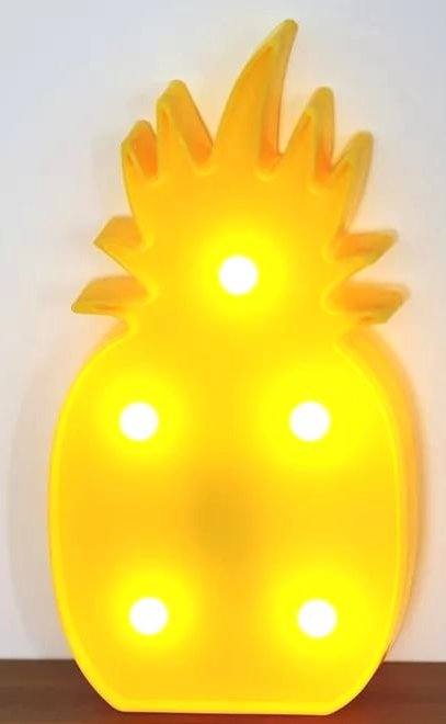 Ночник Ананас с лампами, выполненный в минималистичном стиле, будет оригинальным украшением интерьера детской комнаты. Его Ярко желтый цвет при дневном освещении поднимает настроение, придает сил и энергии. А в темное время суток ночник послужит дополнительным источником света. Белые пластмассовые шарики излучают мягкий, теплый свет, который не напрягает зрение, и дарит уют.
