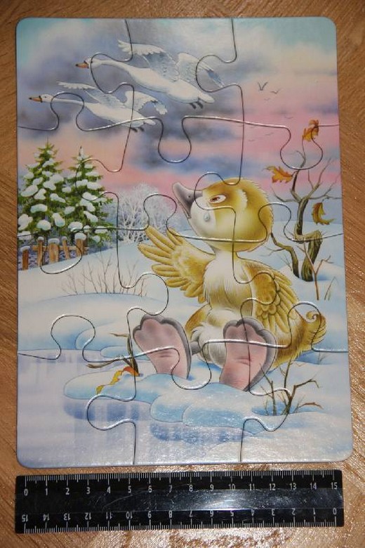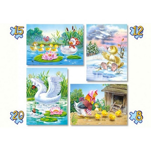 · 4 пазла с изображением героев любимого мультфильма "Гадкий утенок" по 8, 12, 15 и 20 элементов