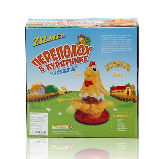 Настольная игра «Переполох в курятнике» понравится даже тем, кто не любит куриц и курятники! Суть ее заключается в том, чтобы выдергивать по жёлтому перышку из курицы-несушки так, чтобы она не проронила яйца, лежащие на них. Нужно быть внимательными и расчетливыми чтобы заметить какие перышки дергать не стоит. Качественная пластмассовая игрушка сделает игру еще ярче и увлекательней!