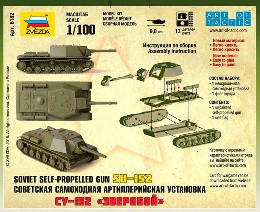 Советский Танк СУ-152 Зверобой – представляет собой набор деталей, которые необходимо собрать, склеить и раскрасить. В итоге получится уменьшенная в 100 раз копия советского танка. Процесс создания боевой машины - это очень увлекательное и кропотливое занятие, которое требует времени и терпения, но результат работы обязательно порадует. Данное занятие увлечет не только ребенка, но и займет досуг взрослого.