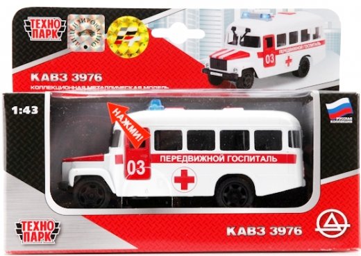 Металлическая машинка «Передвижной госпиталь» – это уменьшенная масштабная модель автомобиля КАВЗ выполненного в дизайне медицинской помощи. Игрушка имеет как игровую ценность, так и коллекционную. У машинки можно поднять капот, чтобы рассмотреть имитацию двигателя, открыть все двери, чтобы рассмотреть, как скрупулёзно исполнен автомобиль внутри, для того, чтобы наблюдать, как она быстро следует по указанному маршруту достаточно слегка откатить её назад и отпустить. Правдоподобности игре добавят световые и звуковые эффекты изделия.