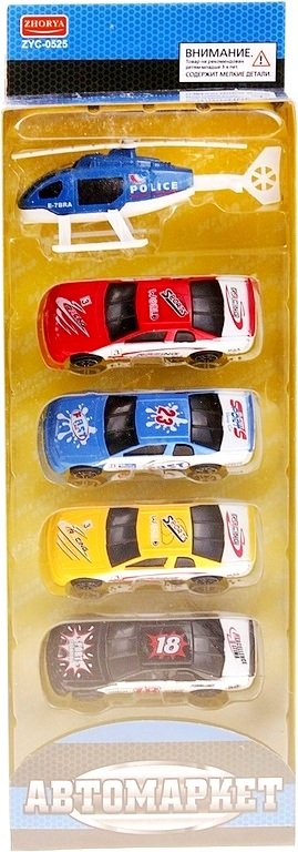 Состав набора: 4 машинки, вертолет.
