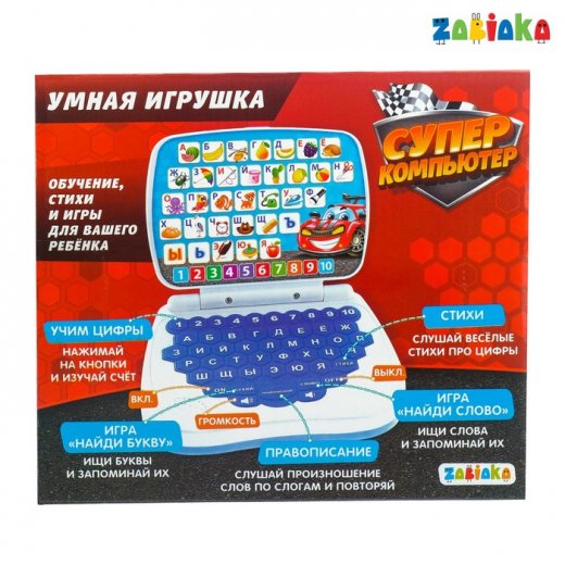 «Супер компьютер» — это увлекательная развивающая игрушка, которая познакомит малыша с алфавитом, цифрами, основами счёта, правописания и логики, а также развлечёт стихами. Детский гаджет способствует улучшению памяти, логического мышления, цветового и звукового восприятия.