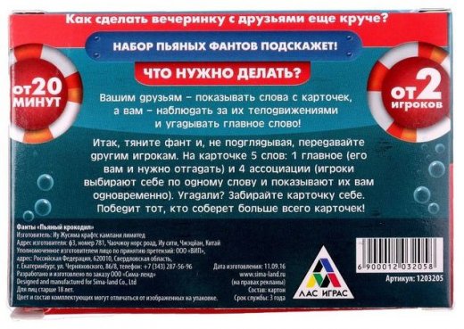 Купить Фанты пьяный крокодил со скидкой 10% в Новосибирске Вы можете в интернет магазине настольных и развивающих игр «Игры Почемучек».