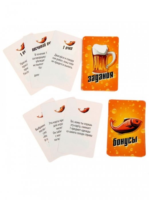 Перед началом игры разделите карточки на две колоды: задания и бонусы. И не забудьте запастись горячительными напитками! Тяните карточки со смешными заданиями и выполняйте их, зарабатывая очки. Ну а если не хочется — пейте штрафную!