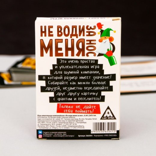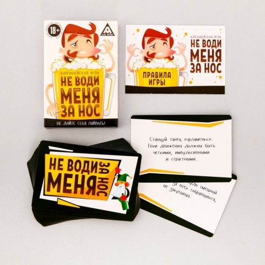 Настольная игра "Не води меня за нос" - это очень простая и увлекательная игра для шумной компании! Собирайте как можно больше друзей, незаметно передавайте друг другу карточку с фантом и веселитесь. А если ведущий вас поймал, придётся выполнять задание!