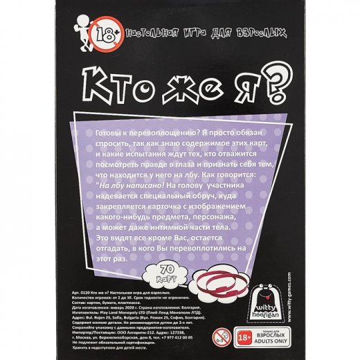 Оставить свой отзыв о настольной игре "Кто же я?18+" (понравилось/не понравилось и почему) Вы можете чуть ниже в разделе Отзывы