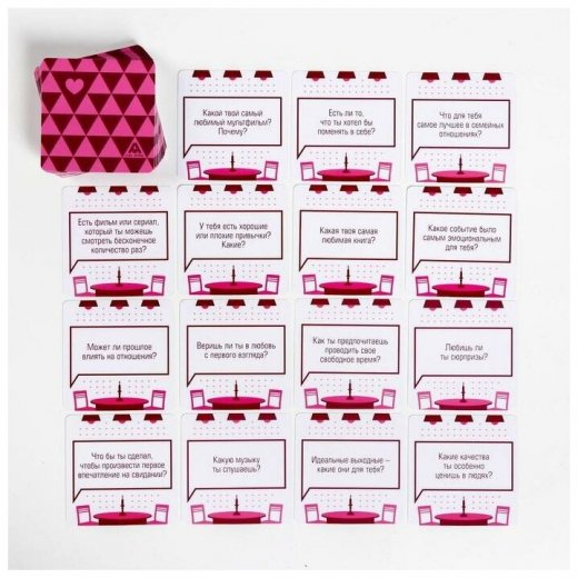 Это романтическая игра для двоих, которую можно взять с собой в кафе, парк или в гости к своей второй половинке.
