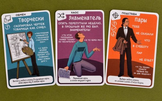 Именно поэтому в игре «Ещё не отчислен» нужно вовремя разыгрывать карты с руки: прогуливать пары, сдавать лабы или даже уходить в академ – в универе, как и на войне, все средства хороши. До тех пор, пока тебя за них не отчислят…