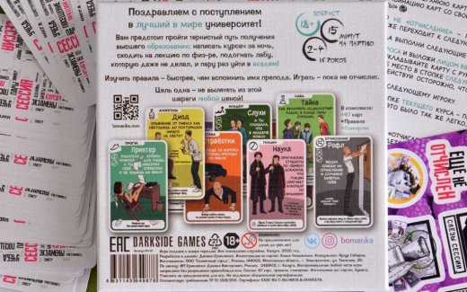 Настольная игра «Ещё не отчислен» – это всё то, через что проходят студенты в вузах по всей России и миру. Ну, то есть игра о том, как написать курсач за одну ночь, скатать лабу не читая, уйти в академ и сделать всё, чтобы не вылететь из универа раньше времени.