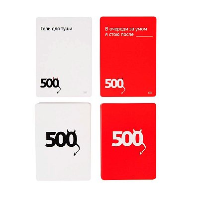 - Открываем коробку и видим, что создатели нас не обманули: в ней действительно ровно 500 карт. Сотня красных — с провокационными вопросами и забавными предложениями с пропусками — и 400 белых — с не менее смешными и неприличными ответами.