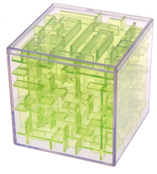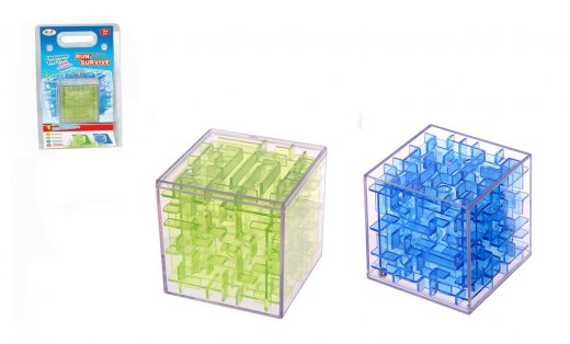 Головоломка "Run Survive: Кубический лабиринт" поможет развить пространственное мышление, логику и память. Трехмерный лабиринт представляет собой прозрачный куб, внутри которого расположены различные переходы, тоннели, тупики из полупрозрачного материала. Металлический шарик нужно доставить к выходу за максимально короткий срок. Когда задача выполнена, шарик запускается обратно в лабиринт, и кубик необходимо покрутить в руках, чтобы шарик заблудился в головоломке, после чего можно начинать заново играть.