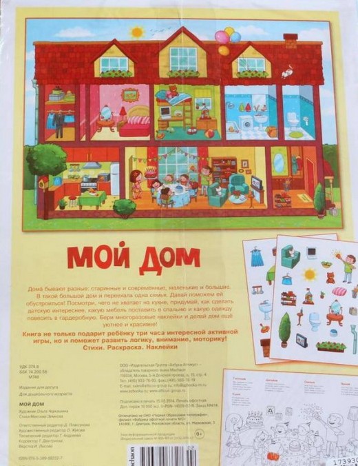 Постер с многоразовыми наклейками: Мой дом. Это один из нескольких постеров от Махаон, в серии есть и другие издания (сад-огород, животные Африки, магазин продуктов, в городе).