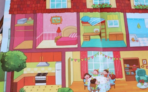 На постере "Дом" - многокомнатный домик, обставляем разные помещения, расселяем человечков.