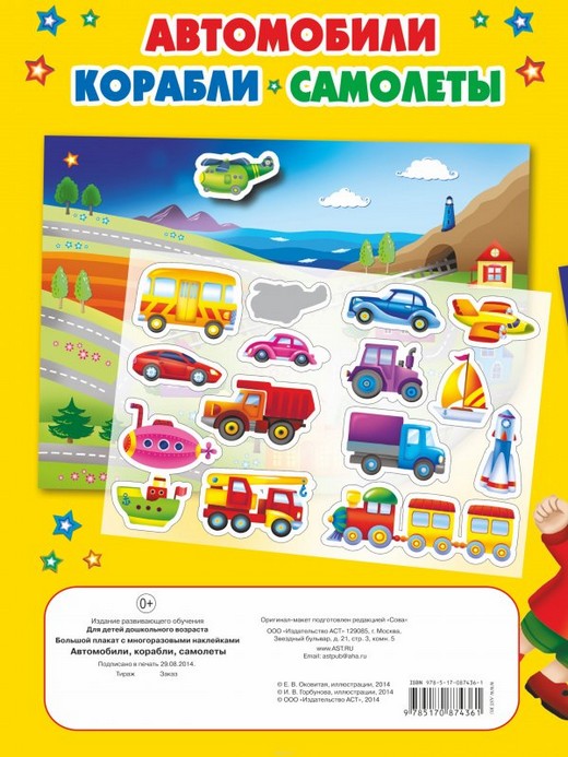 Купить Многоразовые наклейки Автомобили Корабли Самолеты в Новосибирске Вы можете в магазине развивающих и настольных игр "Игры Почемучек"