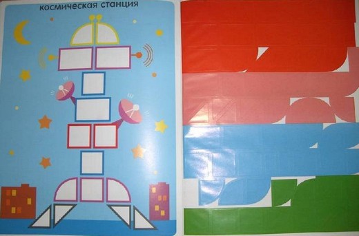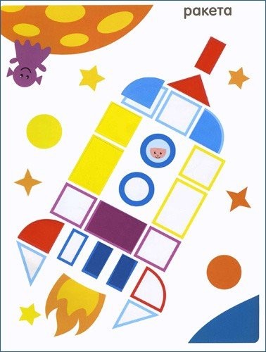 В книге с многоразовыми наклейками "Сложи мозаику" на каждой странице есть рисунок, состоящий из неокрашенных геометрических фигур. Каждая фигура имеет рамочку определенного цвета – ориентир для юного художника, который «раскрасит» картинки разноцветными наклейками. Во время игры кроха познакомится с основными цветами и геометрическими фигурами. Обсуждая со взрослым сюжеты картинок – воздушный шар на солнечном небе, прекрасный парусник в морских волнах, загадочная космическая станция и другие – малыш расширит свой кругозор и пополнит словарный запас.