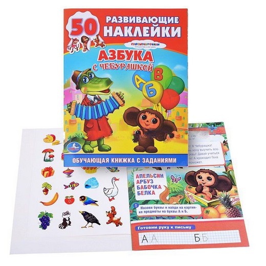 Купить Развивающие наклейки Азбука с Чебурашкой в Новосибирске Вы можете в магазине развивающих и настольных игр "Игры Почемучек"
