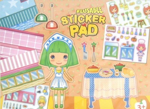Альбом с многоразовыми наклейками "Моя кухня". Прекрасный подарок для маленьких хозяек. Альбом состоит из пяти листов. На каждом листе представлена девочка-хозяйка и различная кухонная мебель, посуда, продукты. Игра развивает мелкую моторику, очень красочный и оригинальный.