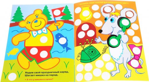 Наклей кружочки Мишка (100 накл.) – это весьма интересное и увлекательное занятие для ребенка. "Наклей кружочки" поможет малышу не увлекательно, но еще и с пользой провести время! На каждой страничке его ждут красочные картинки задание найти на листе с наклейками необходимое количество кружочков и приклеить их в нужное место.