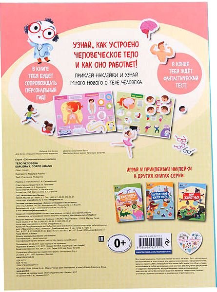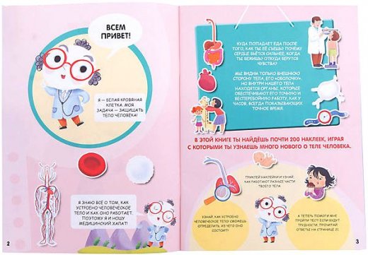 Книга "Тело человека" с наклейками станет замечательным подарком для детей! Яркие страницы книги и 200 наклеек помогут ребятам узнать, как устроено человеческое тело и как оно работает. В пути их будет сопровождать персональный гид - белая кровяная клетка. А в конце книги малышей будет ждать фантастический тест, с помощью которого они смогут проверить полученные знания. Читая текст и приклеивая наклейки, малыши не только смогут улучшить интеллектуальные способности, но весело и с пользой провести свое время.