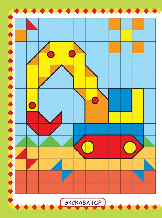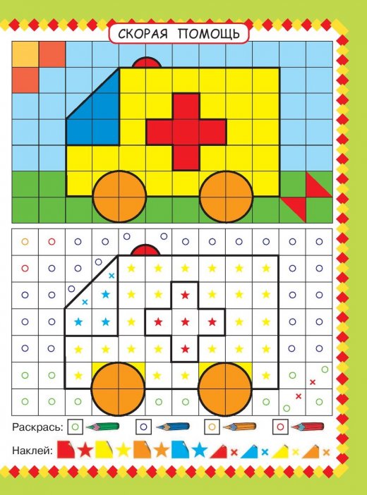 Купить наклей мозаику "Машины помощники" в Новосибирске Вы можете в магазине развивающих и настольных игр "Игры Почемучек".