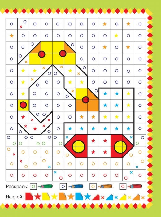 В замечательной книжке наклей мозаику "Машины помощники 2000 наклеек" - картинки по клеточкам и коллекция геометрических стикеров для дошколят. Игры с наклейками развивают фантазию, творческое воображение и координацию движений. Чудесная книга со стикерами обязательно понравится любознательным малышам. Это отличная основа для творчества - так интересно своими руками сложить мозаику, например экскаватора или пожарной машины, украсив картинку разноцветными наклейками.
