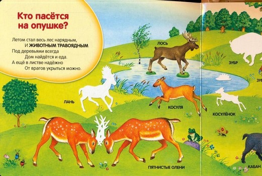 Играя с объемными многоразовыми наклейками, ваш малыш узнает много нового и интересного о животных леса. А еще эта увлекательная книга поможет развитию логики и внимания ребенка. На страничках этой книги ребенок познакомится с животными леса, узнает что они едят, у кого какой домик, что делают животные зимой и у кого какой малыш.