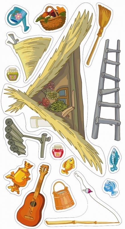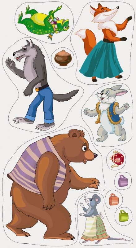 Придумывайте, клейте, играйте – пусть это доставит вам удовольствие и радость! Таким образом, используя воображение, на ярко-красочном поле может развернуться настоящее динамичное театральное представление! Одну и ту же историю или сказку можно разыгрывать много раз, по-новому располагая элементы игры. Предложите Вашему малышу придумать и собственную уникальную сказку.