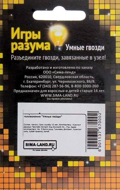 Купить Головоломку Умные гвозди №18 в Новосибирске Вы можете в магазине развивающих и настольных игр "Игры Почемучек"
