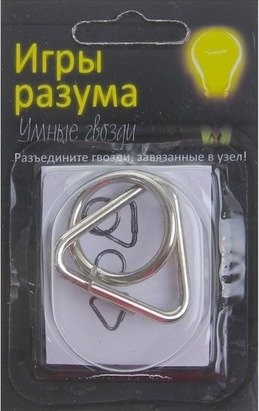 Задача головоломки разъединить завязанные узлом гвозди. Головоломка выглядит очень просто, но помогает провести время действительно интересно и весело. Её большое достоинство – это то, что головоломку можно взять с собой куда угодно. Её можно разбирать в маршрутке, в поезде, по дороге в школу, в обеденный перерыв или просто стоя в очереди в магазине.