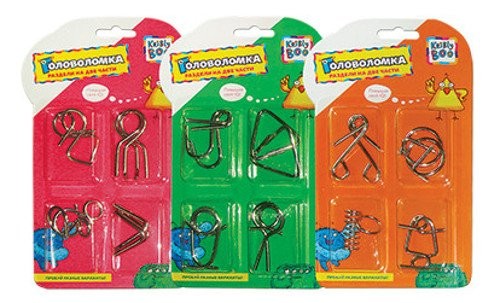 Каждая из четырех головоломок, входящих в этот набор, заставит поломать голову над ее решением. Нужно последовательно разъединить и соединить детали. Кажущаяся простота этого процесса обманчива - попробуйте разобрать их и собрать обратно. Получилось?