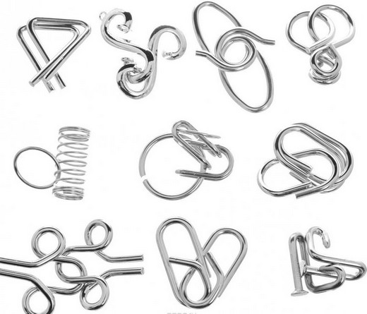 Набор из десяти головоломок - это интересный и занимательный подарок, а также прекрасный способ для ребенка весело провести время. В наборе собраны металлические головоломки не самых сложных уровней: одна головоломка 3 уровня сложности; четыре головоломки 2 уровня сложности; пять головоломок 1 уровня сложности.