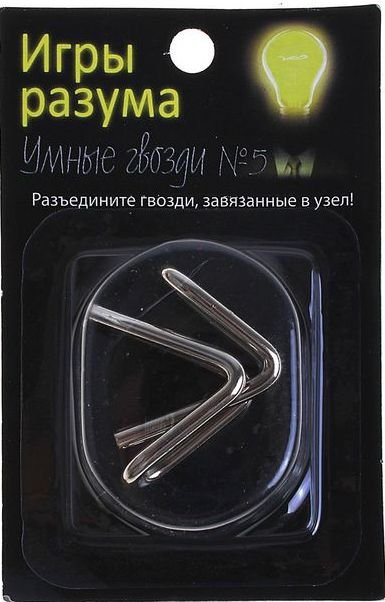 Металлическая головоломка Умные гвозди №5 - это интересный и занимательный подарок для ребенка, любящего интеллектуальные задачки. Смысл решения данной головоломки в том, чтобы сначала разъединить ее части, а потом суметь соединить их снова, что намного сложнее, чем кажется на первый взгляд. Юному интеллектуалу придется приложит немало умственных усилий и смекалки чтобы решить ее, ведь чем запутаннее головоломка тем азартнее и интереснее ребенок будет пытаться ее решить. Она не занимает много места, и всегда поможет отвлечься и отдохнуть.