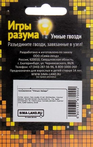 Купить Головоломку Умные гвозди в Новосибирске Вы можете в магазине развивающих и настольных игр "Игры Почемучек"
