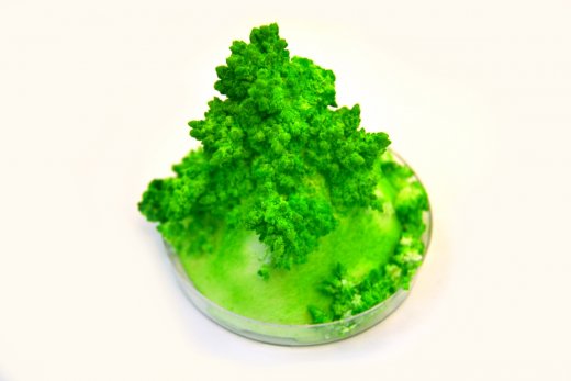 Компонентов набора хватит на проведение эксперимента несколько раз. А еще кристаллам можно придать форму. Дело в том, что они нарастают на бумажной основе, которая входит в комплект. Проявите фантазию и попробуйте скрутить бумагу так, чтобы получить необычные друзы. Можете использовать двухъярусную основу, цилиндры и конусы разных диаметров. Играйте с формой и высотой, создавайте цветущие луга и сказочные сады из кристаллов.