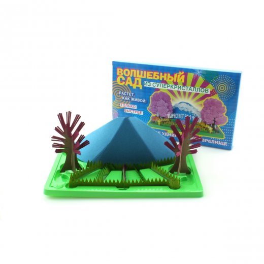 "Волшебный сад из суперкристаллов" - это увлекательный набор для создания кристаллических шедевров. В набор входят пакетик с жидкостью, картон, подставка, украшения и клей. Для выращивания фигур надо налить жидкость из пакетика в специальное углубление в подставке. Через несколько часов можно стать свидетелем создания прекрасного кристаллического сада. Достаточно украсить его прилагающимися аксессуарами.