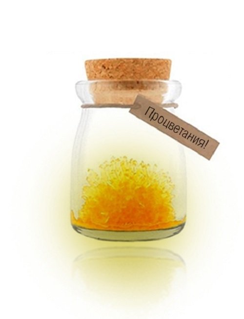 Компании "Бумбарам" представляет набор для выращивания кристаллов желтого цвета с пожеланием процветания из серии "Волшебный кристалл". Благодаря прозрачной баночке, входящей в комплект, будет довольно легко следить за ростом кристаллической массы, а инструкция подскажет, как правильно приготовить химическую смесь.