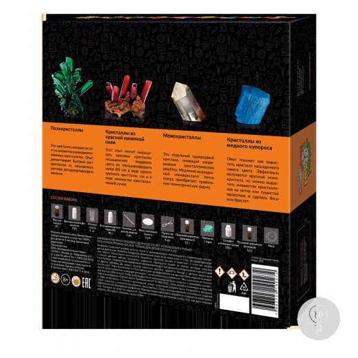Набор химических экспериментов для детей "Лаборатория кристаллов" – набор экспериментов, в который входит ингредиенты для создания 4х разных видов кристаллов: