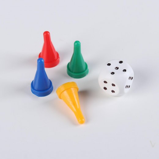 Когда любимые настольные игры пользуются популярностью у семьи и друзей, расходные материалы - игральные кости, фишки и проч. - теряются или приходят в негодность. Заменить недостающие аксессуары позволит этот набор: удобный обтекаемый кубик и 4 яркие фишки.
