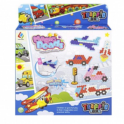 Суть игры: бусинки, входящие в комплект, выкладываются на один из трафаретов из набора с помощью специальной ручки или пинцета.Бусинки можно выкладывать либо по схемам, приведенным в качестве примера на упаковке, либо самостоятельно придумывать те или иные фигуры. После того, как бусинки будут выложены, их необходимо спрыснуть водою с помощью пульверизатора, который входит в состав набора. Далее выждать не менее 30 минут, чтобы бусинки скрепились между собою и образовали устойчивую фигурку.