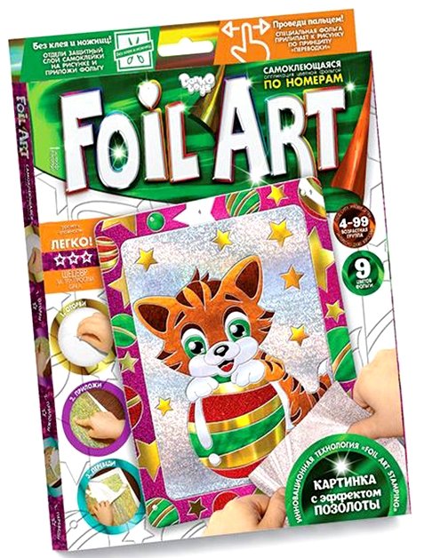 Имеется специальная планшетка с пронумерованными областями. После снятия с них защитного слоя необходимо приложить требуемый по цвету отрезок фольги, аккуратно надавить на него, и произойдет волшебство. Фольга аккуратно и красиво переместится на нужный участок планшетки. В результате юный художник получит очень симпатичную картинку, которую можно как подарить кому-нибудь в качестве открытки, так и просто повесить у себя дома на стене как свидетельство таланта и усидчивости.