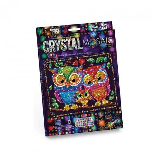 Crystal Mosaic - это серия наборов для креативного творчества. Чтобы создать необычайно красивую мозаику "Совы" нужно лишь немного времени и чуточку проявить фантазию. В наборе уже присутствует все необходимое: картина-основа с клейкой поверхностью и разноцветные акриловые кристаллы. С их помощью получится великолепная картина, сделанная своими руками. Благодаря граням кристаллов она будет переливаться множеством оттенков, завораживая своим сиянием. Девочке обязательно захочется повесить такую картину на стену в своей комнате.