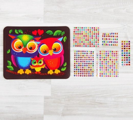 Купить Набор для творчества «Совушки» тёмный фон самоклеящиеся кристаллы в Новосибирске Вы можете в магазине развивающих и настольных игр "Игры Почемучек".