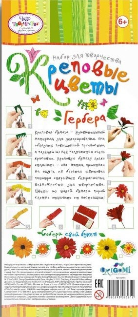 Набор для творчества Цветы креповые Гербера позволит ребенку создать красивую поделку из цветной бумаги и клея. Креповая бумага - удивительный материал для декорирования. Она обладает повышенной прочностью, а поделки из нее получаются очень красивые. Ее богатая цветовая палитра открывает безграничные возможности для творчества. Цветы из такой бумаги порой сложно отличить от настоящих.