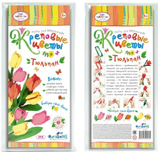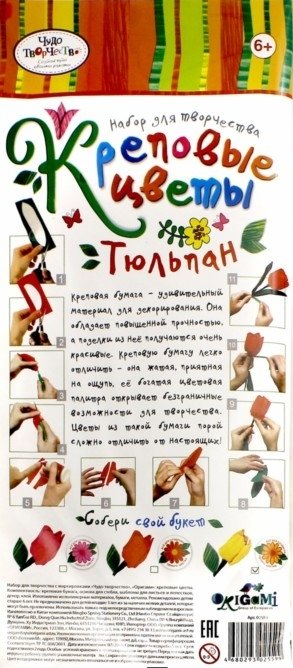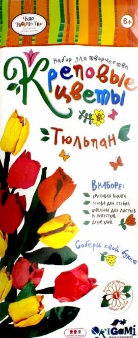 Набор для творчества Цветы креповые своими руками Тюльпан - позволит ребенку создать красивую поделку из цветной бумаги и клея. Креповая бумага - удивительный материал для декорирования. Она обладает повышенной прочностью, а поделки из нее получаются очень красивые. Ее богатая цветовая палитра открывает безграничные возможности для творчества. Цветы из такой бумаги порой сложно отличить от настоящих. В комплекте имеется простая инструкция с иллюстрациями, следуя которой обладатель набора сможет склеить цветок герберы.