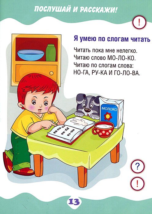 Занятия с такой книгой пробуждают в малыше интерес к чтению. Он слушает стихотворения, соотнося их с напечатанными строчками. В это время задействованы зрительная и слуховая память, а значит, ребенок лучше запоминает текст. Книга «беседует» с ним, проверяет память и внимание. Темы стихотворений близки малышу. Повторяя их, он может красиво и подробно рассказать о том, что умеет и знает. В легкой игровой форме ребенок получает новые знания. Книга вырабатывает у ребенка навык самопроверки, учит его быть самостоятельным.